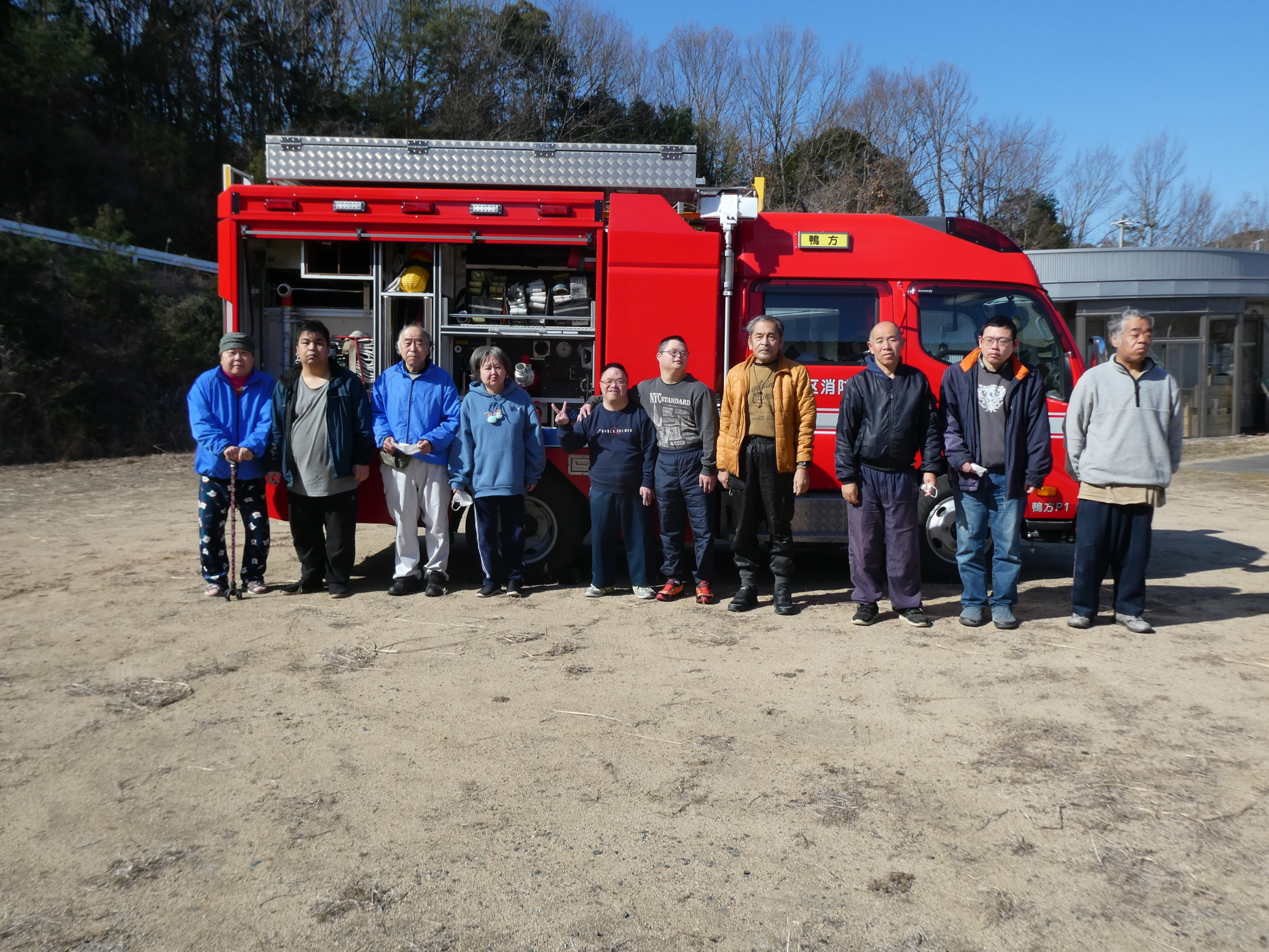 消防防災訓練を行いました。鴨方消防署のご指導で避難訓練と消火器の使い方を中心に行いました。避難の仕方は全員きちんとした行動がとれ、消防士さんにOKをいただきました。