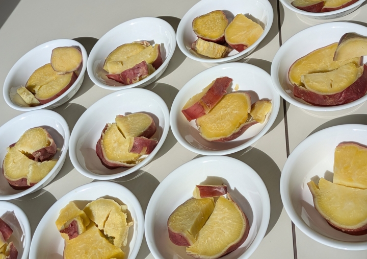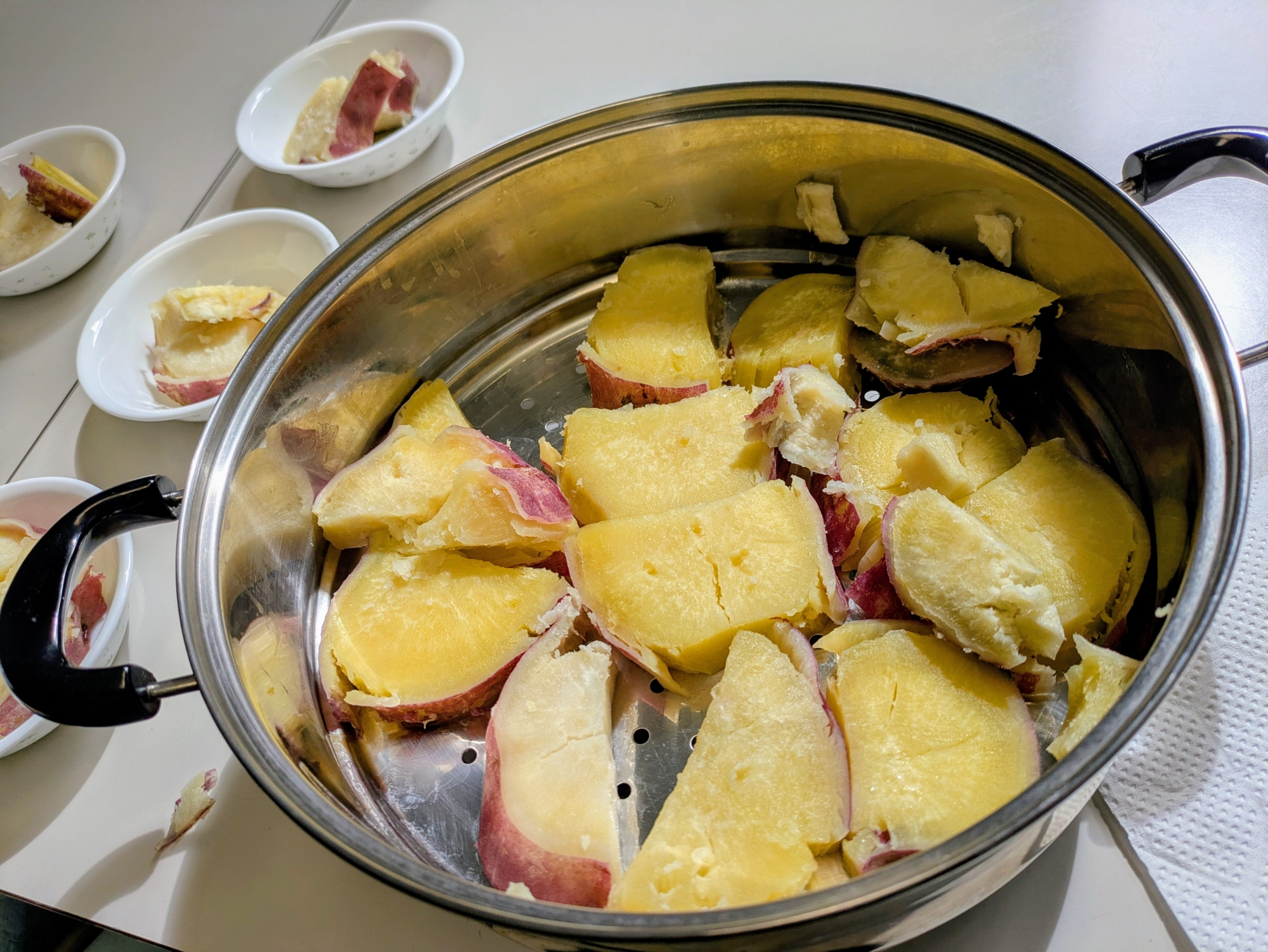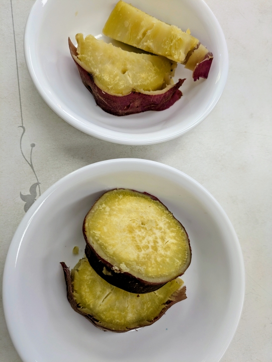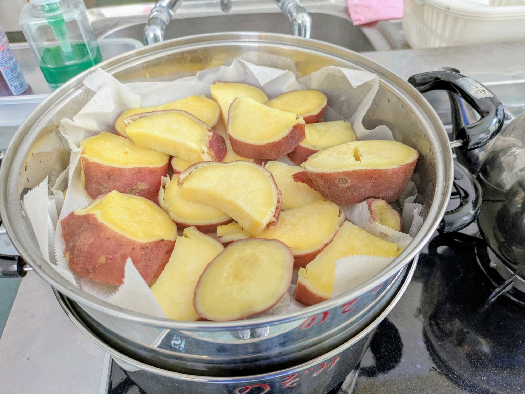 今日のお昼に一品プラス💖は毎度おなじみのふかし芋デス😉