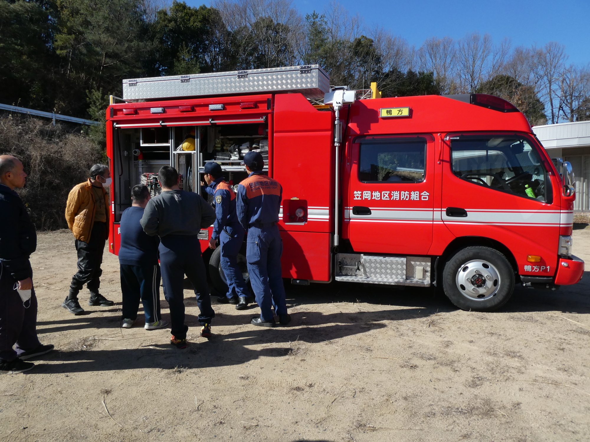 はじめの挨拶で鴨方消防局の方が「緊急連絡入った時は出動しますので