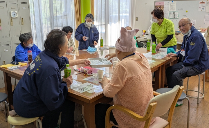 今日は書道教室です。ボランティアの指導者を毎月迎え、利用者さんの字が上手になるように取り組んでいます。以前は毛筆の練習をしていたのですが、今年度からは、硬筆習字を練習しています。