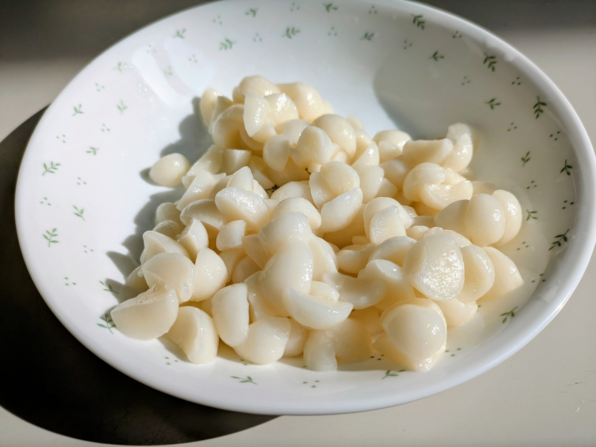 白玉団子も丸いと危険なので😉一つを四等分にカット😉