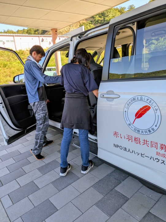 この車は赤い羽根共同募金の助成を受けて購入しました。ありがとうございました。